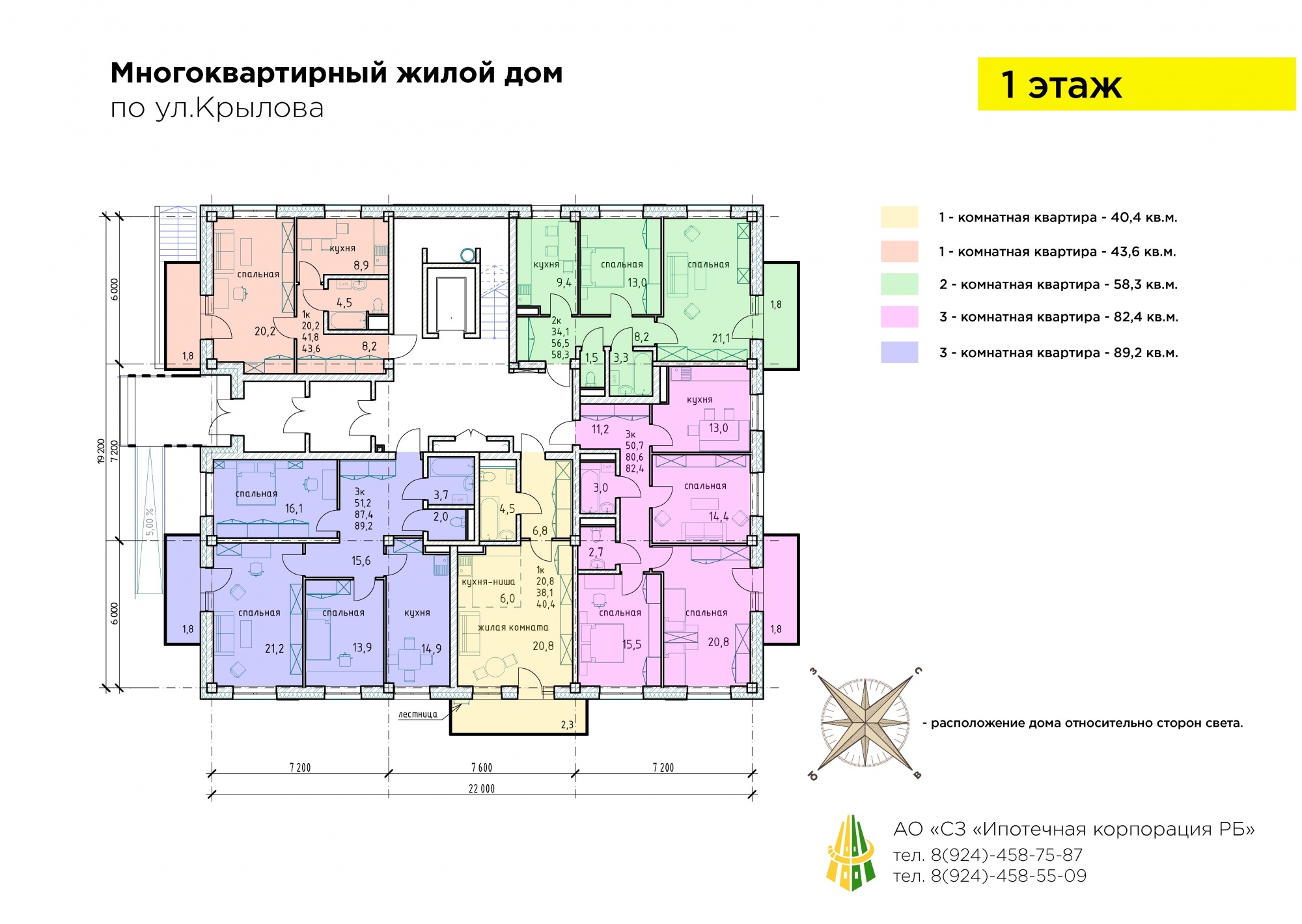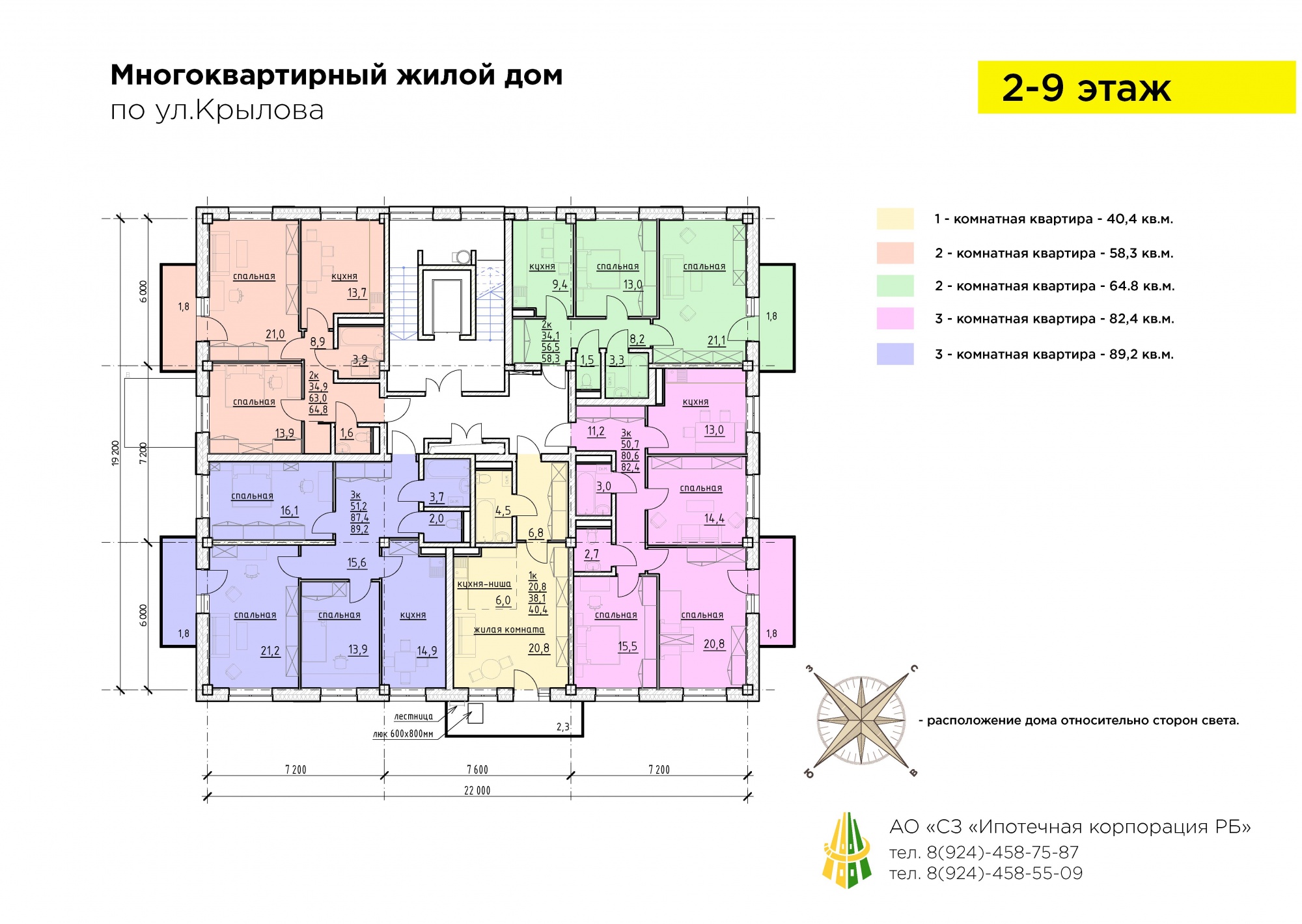 - Площадь квартир 40,4 – 89,2 кв.м.